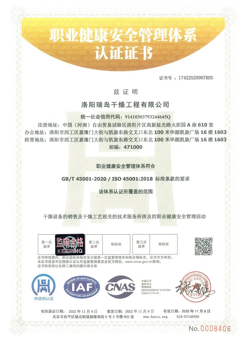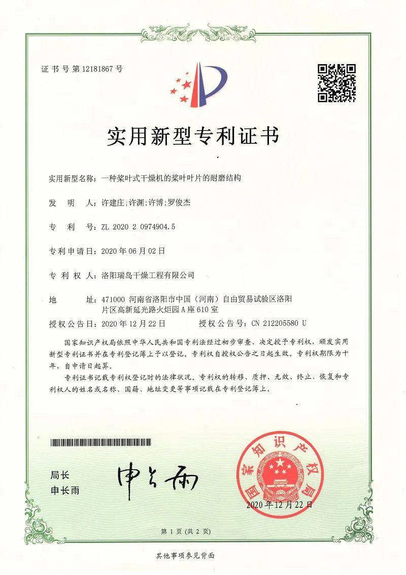 近年来,通过众多可靠装备系统所实现的成功业绩,瑞岛已为广大客户创造巨大价值,引领多个干燥细分领域的专项应用技术进步。瑞岛于 2018年获得国家高新技术企业,已拥有数十项自主知识产权。成为省科技型企业,洛阳市研发中心。